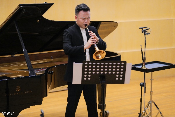 Suona player Wang Zhanzhan performed at the Central Conservatory of Music in Beijing on Thursday, celebrating both his academic achievements and years of artistic exploration. The concert also marked the debut of the first academic doctoral degree in Music Performance Arts (Suona) at the conservatory.