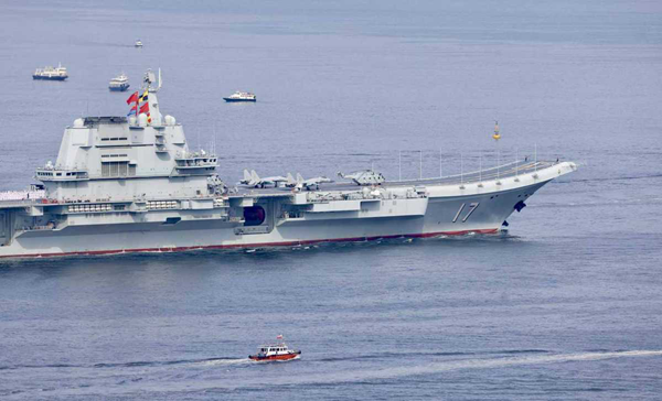 The People's Liberation Army's aircraft carrier CNS Shandong arrives in the Hong Kong Special Administrative Region on July 3 to mark the 28th anniversary of the city's return to the motherland. The fleet will leave Hong Kong on July 7. [Photo by Edmond Tang/China Daily]