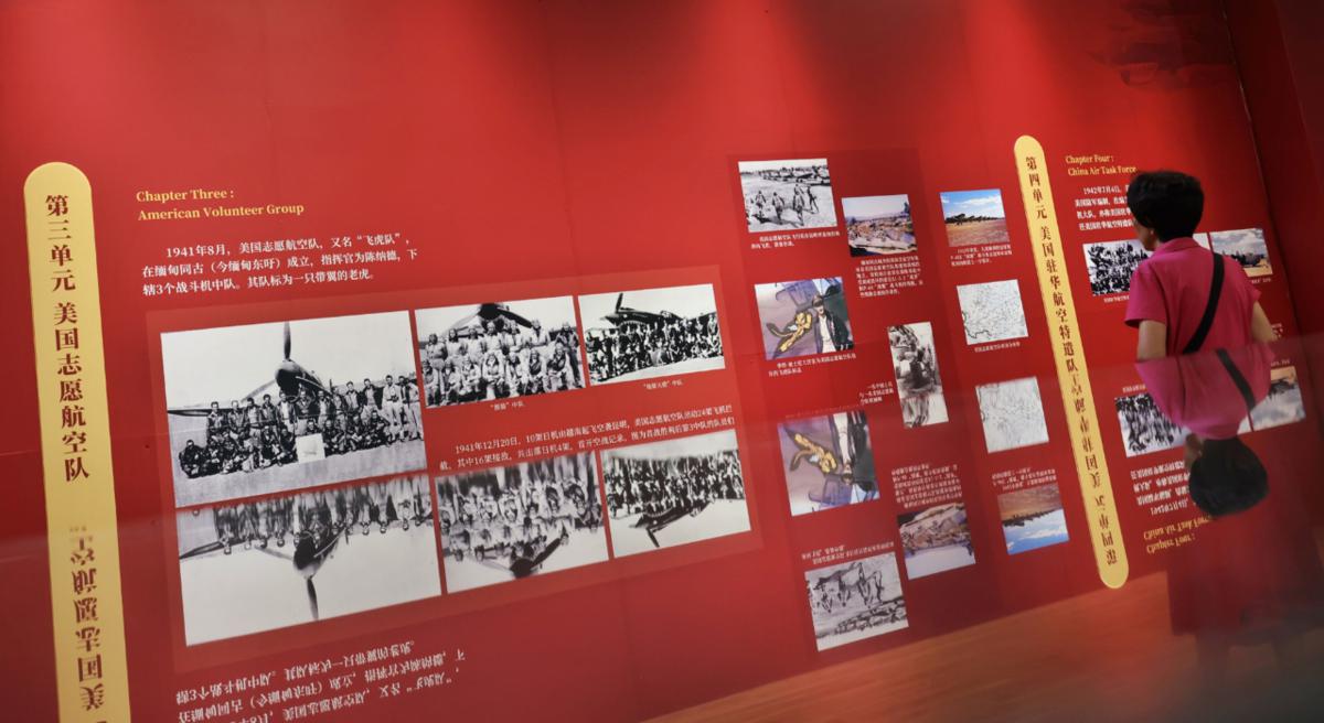 A historical photo exhibit dedicated to the Flying Tigers opened simultaneously in the Guangdong cities of Guangzhou and Dongguan on Thursday in celebration of the 80th anniversary of victory in the Chinese People's War of Resistance Against Japanese Aggression (1931-45) and the World Anti-Fascist War.