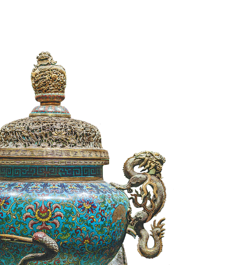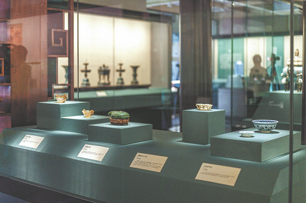 Other must-see exhibits include a gift of a blue-and-white porcelain bowl with gilded clover patterns from the royal family, a Qing Dynasty cloisonne censer with crane motifs, symbolizing longevity, as well as a bamboo-root carving of immortals.