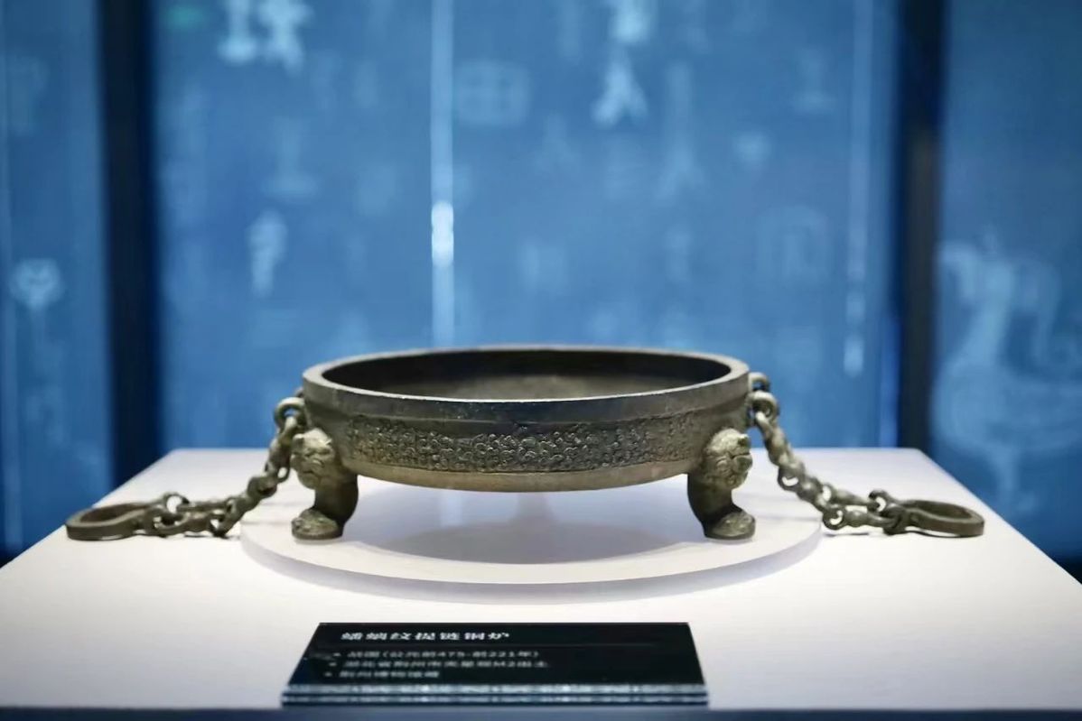 Bronze incense burner with chain-like handles, from the collection of Jingzhou Museum [Photo/Sui-Tang Dynasties Grand Canal Cultural Museum official WeChat account]