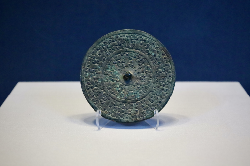 Bronze mirror with coiled chi-dragon motifs, from the collection of Fengxiang District Museum in Baoji, Shaanxi [Photo/Sui-Tang Dynasties Grand Canal Cultural Museum official WeChat account]