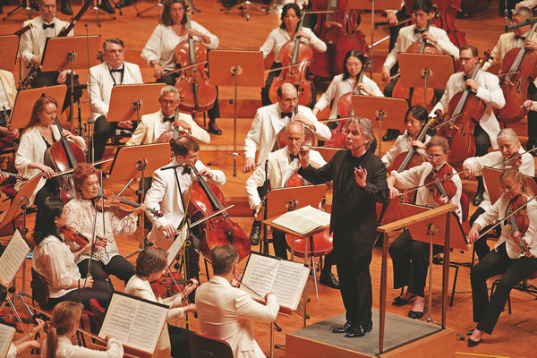 The New York Philharmonic presents the opening concert of the Music in the Summer Air festival at Shanghai Symphony Hall on July 1, under the baton of Finnish conductor Esa-Pekka Salonen. [Photo provided to China Daily]