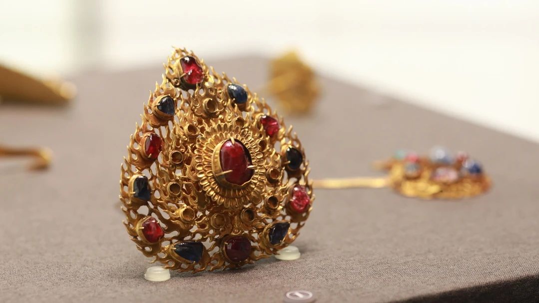 Gold hair decorations embedded with gems, Ming Dynasty, from the collection of Nanjing Municipal Museum [Photo/China Maritime Museum official WeChat account]