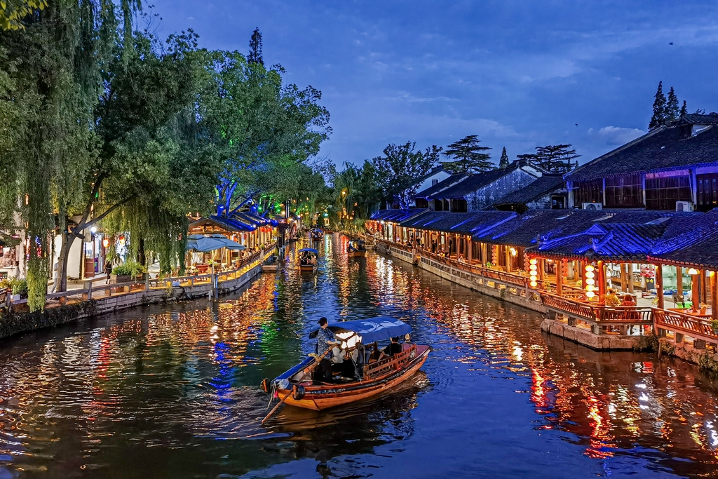 Dazzling night views attract tourists to Zhouzhuang Ancient Town