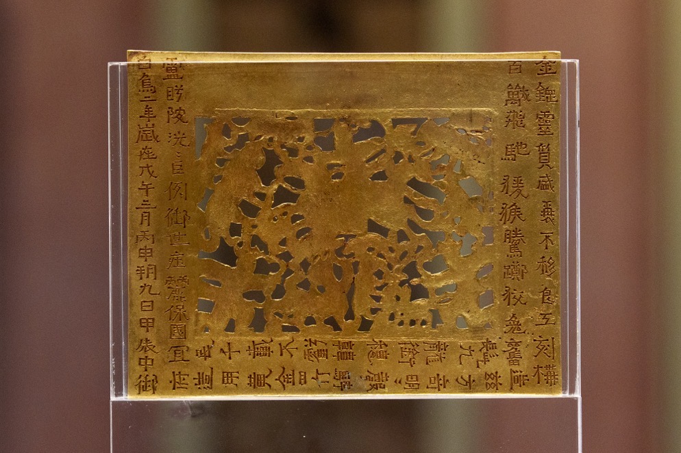 Gold Fangqi ("regional curiosity") Tablet depicting a hunt. [Photo by Gao Erqiang/chinadaily.com.cn]