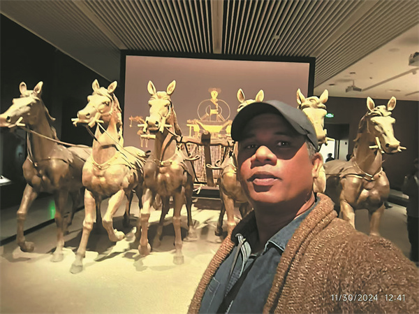 Mufizal Aboobucker at the Hubei Provincial Museum.[Photo provided to China Daily]
