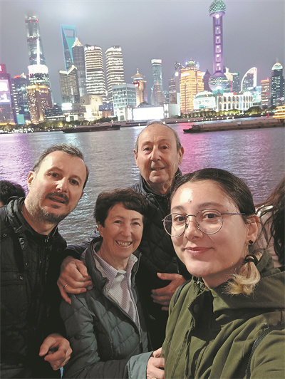 Francesca Garfagnoli with her dad and grandparents at the Bund, Shanghai.[Photo provided to China Daily]