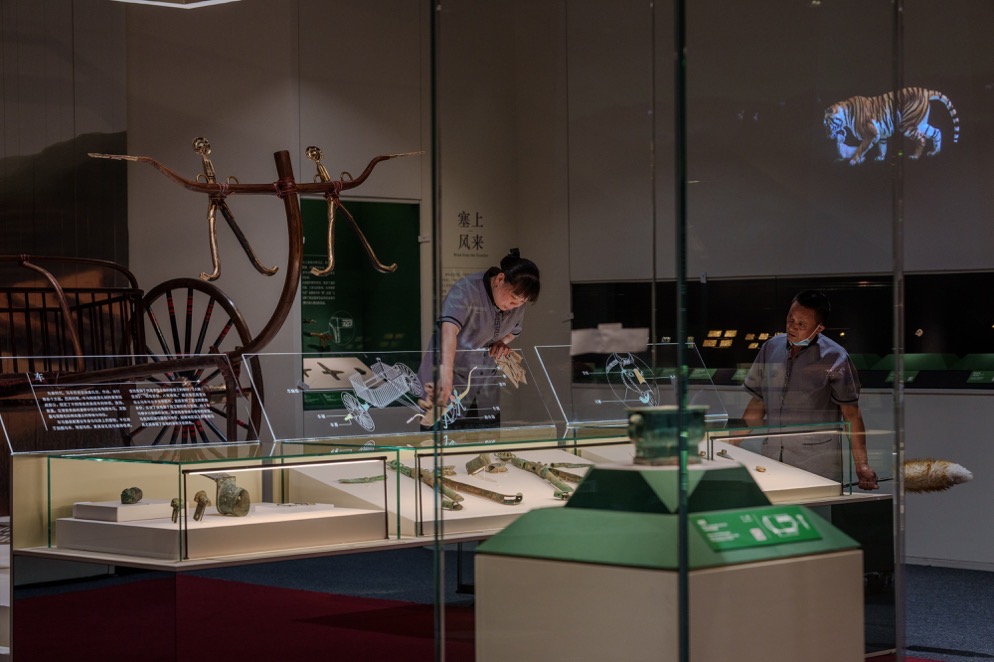 Staff members unpack artifacts from Guyuan, Ningxia, in preparation for The Spiraling Glory: Treasures from Guyuan, Ningxia exhibition at Shanghai Museum East, which opens on Wednesday. [Photo by Gao Erqiang/chinadaily.com.cn]