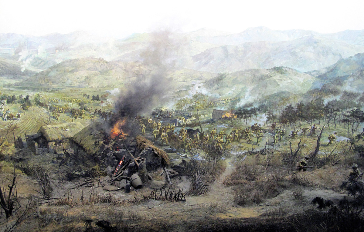The panoramic painting gallery houses a painting, titled The Encirclement and Annihilation along the Chongchon River. Through a combination of various realistic battlefield models, the hall vividly portrays the battle scenes and grand war atmosphere.