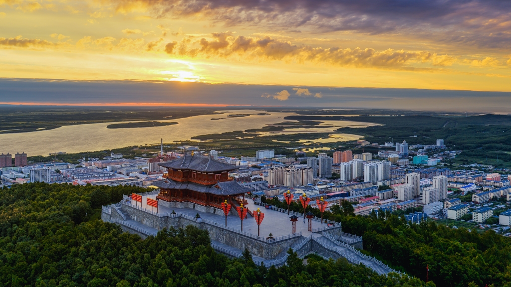 A beautiful sunrise over Dongjige Pavilion in Jiamusi, Heilongjiang province [Photos/IC]