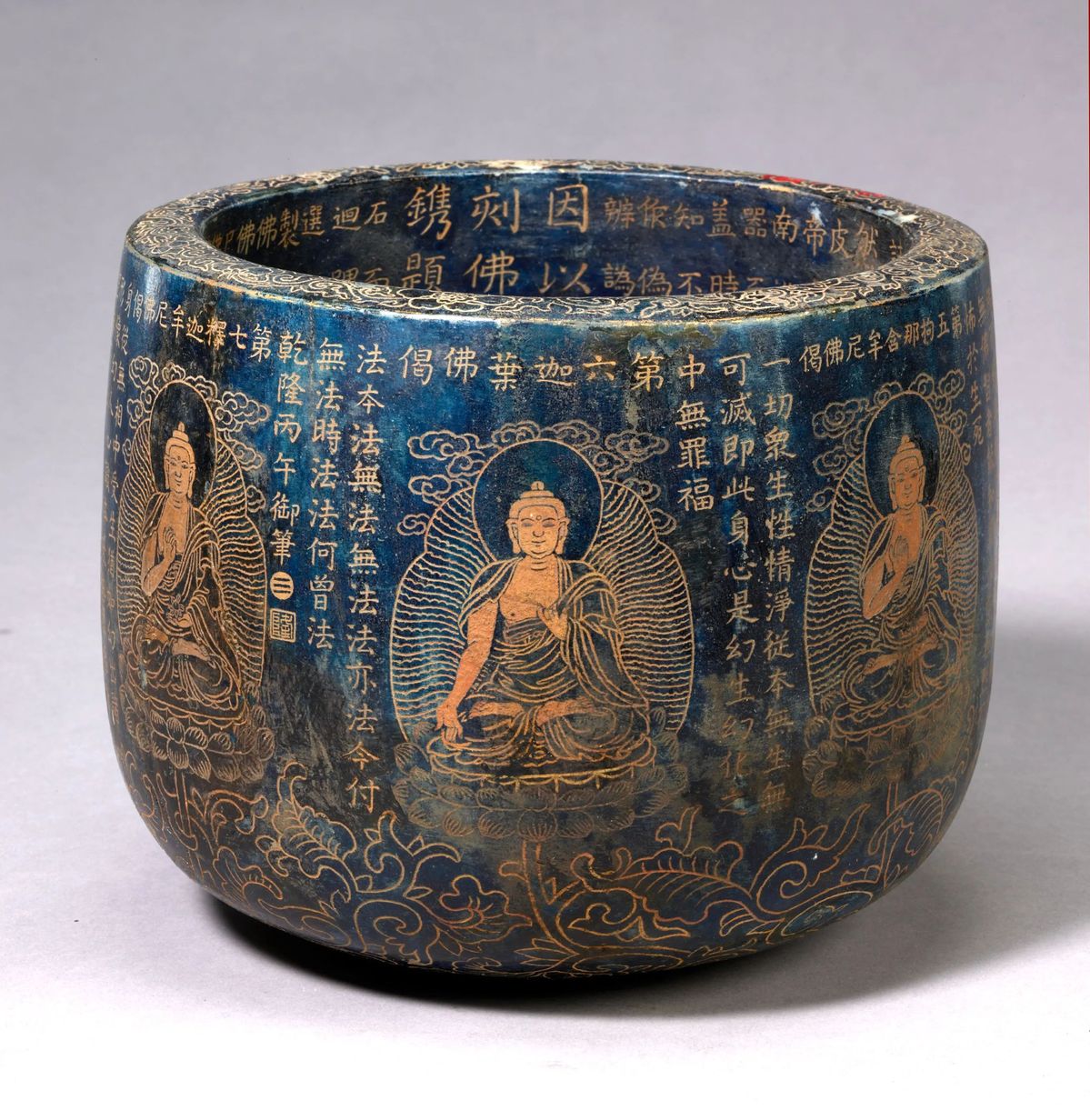 Green jade bowl with seven Buddha motifs and imperial inscriptions by Emperor Qianlong [Photo/Xinjiang Uygur Autonomous Region Museum official WeChat account]