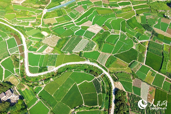 In the height of summer, the rice fields in the suburban areas of Xiamen city, southeast China's Fujian Province take on different shades of color including tender green, vibrant jade and light yellow. Viewed from above, the fields resemble a palette unfolding across the land, showcasing the romantic summer scenery of the countryside.
