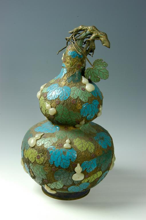 The 66 cm tall Qing Dynasty cloisonné gourd inlaid with jade from the collection of Henan Museum [Photo/Henan Museum official WeChat account]