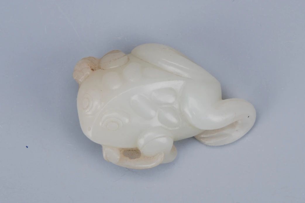 White jade frog, Qing Dynasty (1644-1911), from the collection of Jiangxi Provincial Museum [Photo/China (Hainan) Museum of the South China Sea official WeChat account]