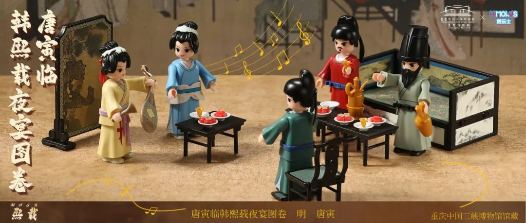 The building block set recreates the night banquet scenes depicted by the painting. [Photo/Chongqing China Three Gorges Museum official WeChat account]