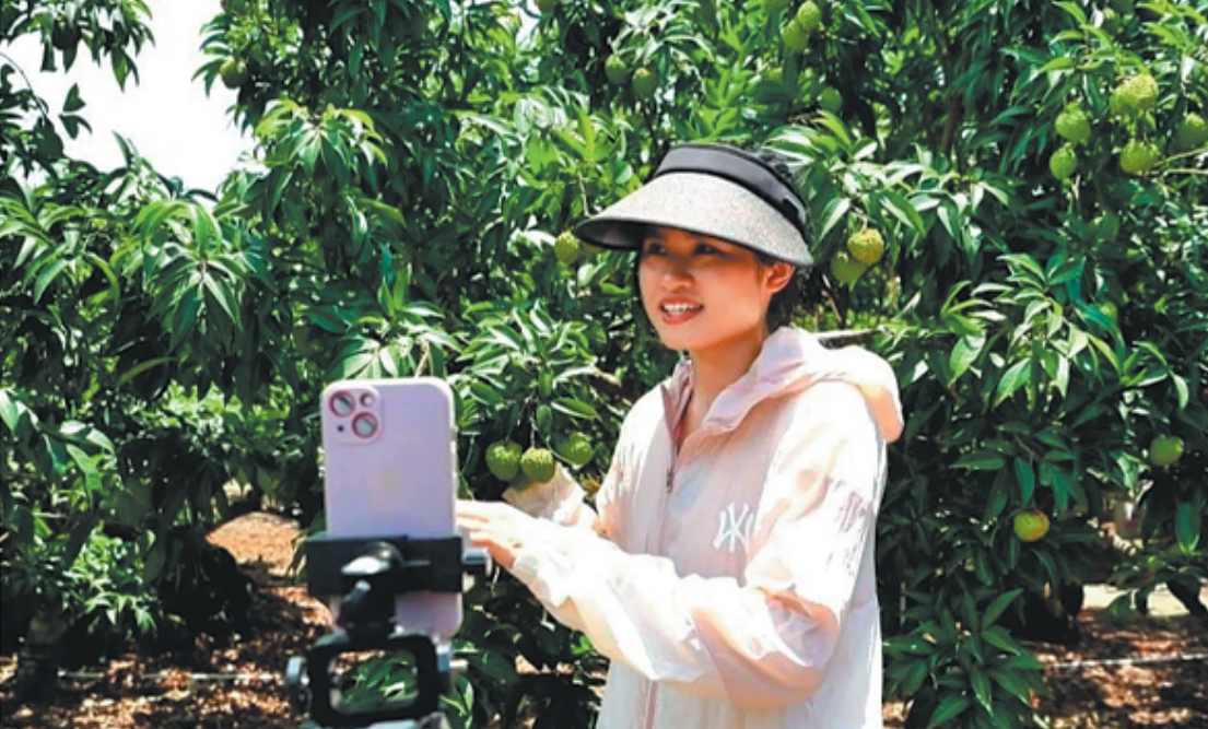 In a lush lychee orchard in Yongxing town of Haikou, Hainan province, agricultural entrepreneur Wu Yuyan speaks into her phone, livestreaming in English to an international audience. Her broadcasts blend expert insights on fruit maturity and sugar levels with engaging content tailored for tropical fruit lovers worldwide.