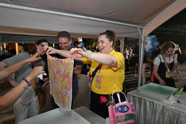 At the Daguan Art Museum, street musicians warmly invited the international guests to join a spontaneous jam session. East met West in an impromptu fusion of musical instruments, creating a unique and lively performance. In the hands-on craft area, participants eagerly tried their hand at crafting beaded bracelets, tufted weavings, and pixel bead art, fully immersing themselves in the distinctive charm of Fuzhou culture.