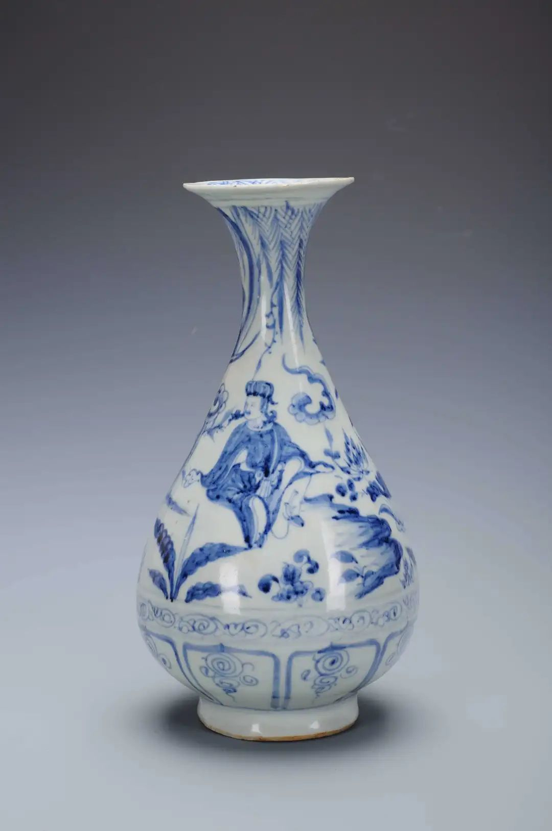A highlight of the collection is a Yuan Dynasty (1271-1368) blue-and-white pear-shaped “yuhuchun” vase with “Zhou Maoshu’s love for lotuses” designs. It’s based on Ode to the Lotus, a classic essay by Song Dynasty philosopher Zhou Dunyi (1017-73), whose courtesy name was Maoshu.