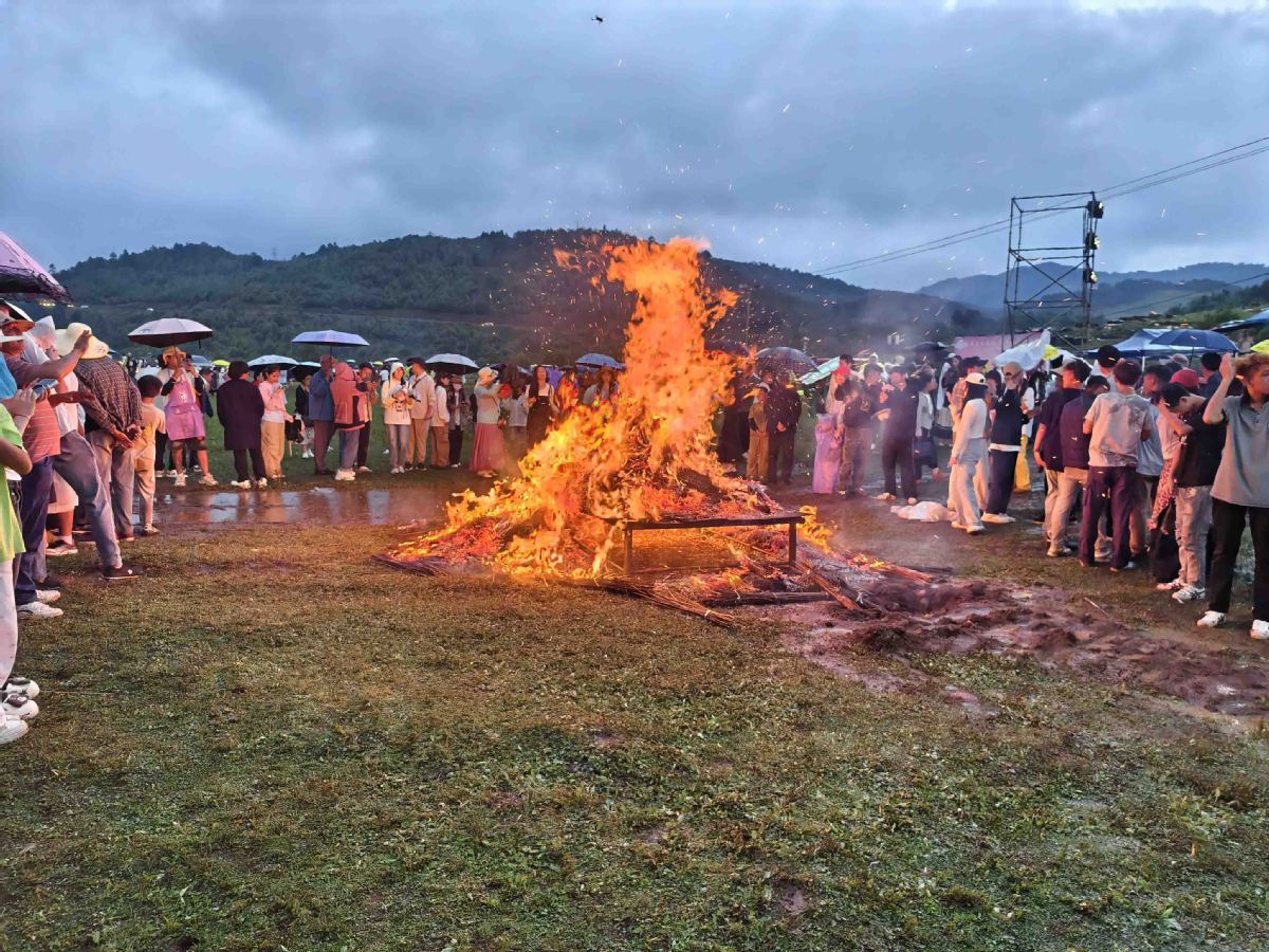 People gather at a campfire party during the 2025 Yanbian Ethnic Torch Festival in Yanbian county, Sichuan province, on Wednesday. [Photo by Peng Chao / chinadaily.com.cn]