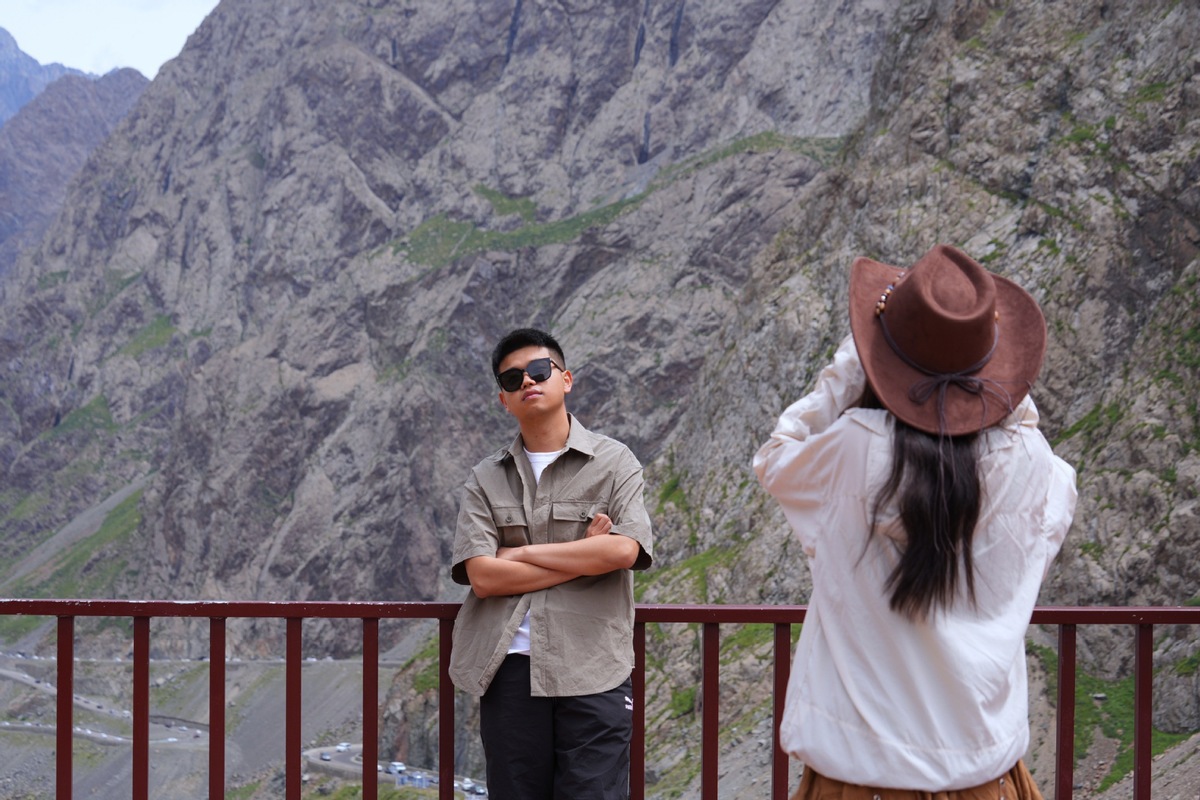 A man poses for a photo at a service area of the Duku Highway in Northwest China's Xinjiang Uygur autonomous region, July 15, 2025. [Photo/Xinhua]