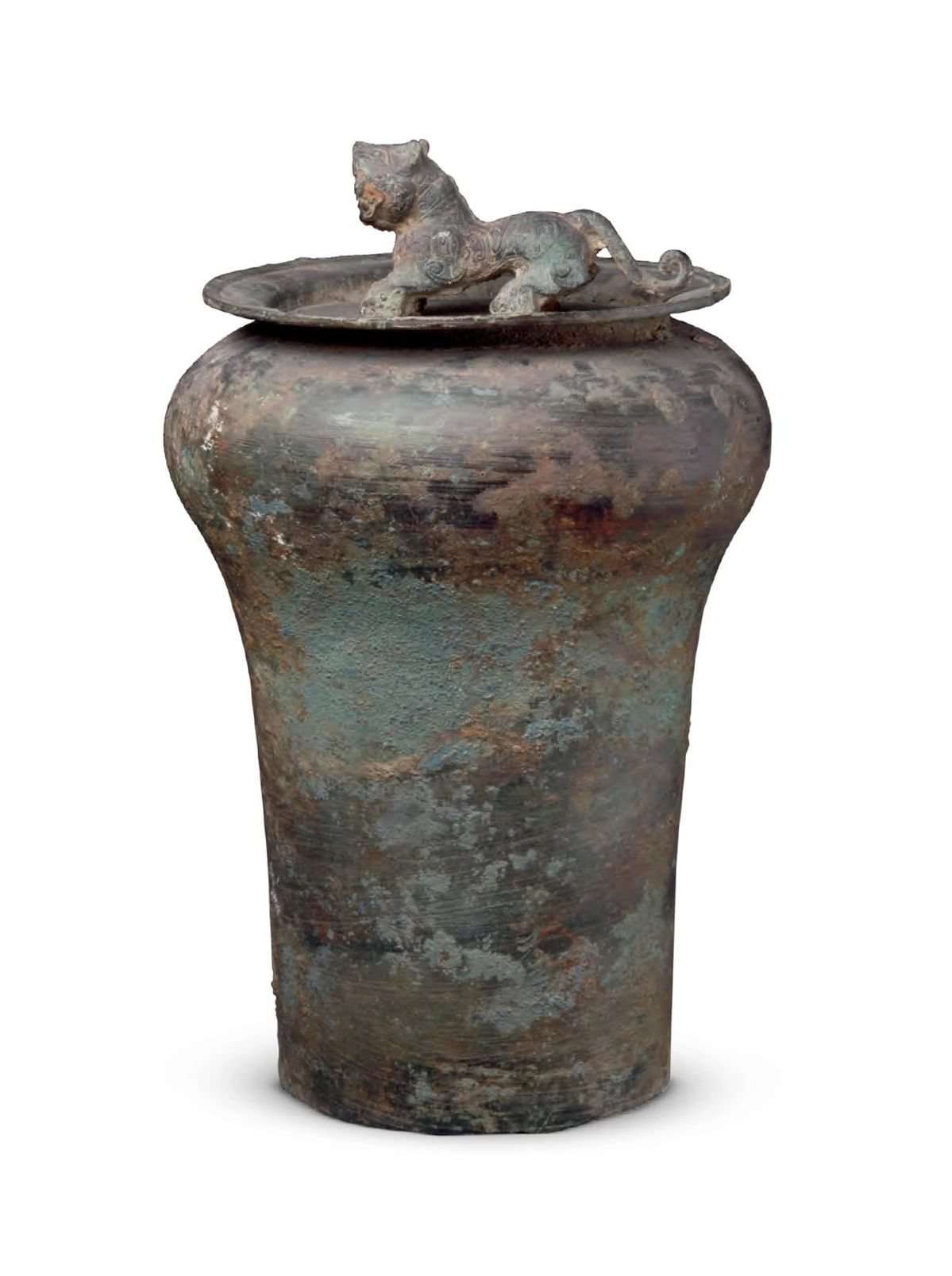 (percussion instrument) with a tiger-shaped knob, Warring States Period (475-221 BC) [Photo/Xinjiang Uygur Autonomous Region Museum official WeChat account]