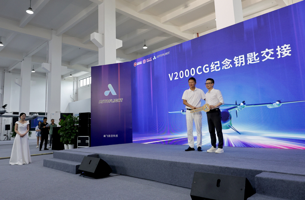 The all-electric V2000CG CarryAll has a payload capacity of up to 400 kg with a maximum cruising speed of 200 km per hour and a range of 200 km. It features vertical takeoff and landing capabilities and a fixed-wing cruising design, enabling its applications in low-altitude logistics, emergency response and other fields.
