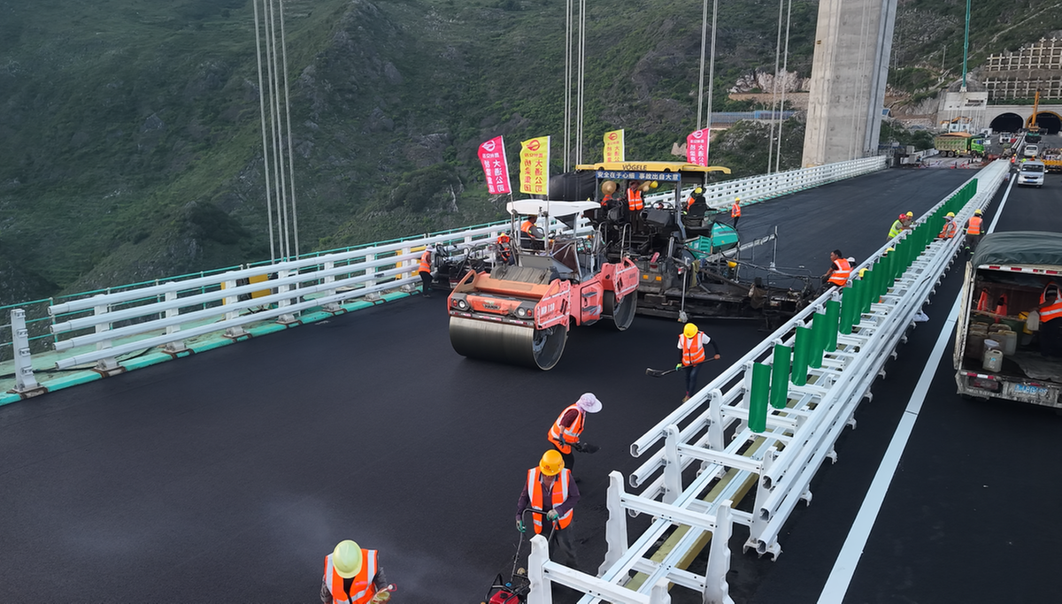 Now that its deck paving is complete, the Huajiang Grand Canyon Bridge is on track to open in Southwest China's Guizhou province by the end of September. [Photo provided to chinadaily.com.cn]