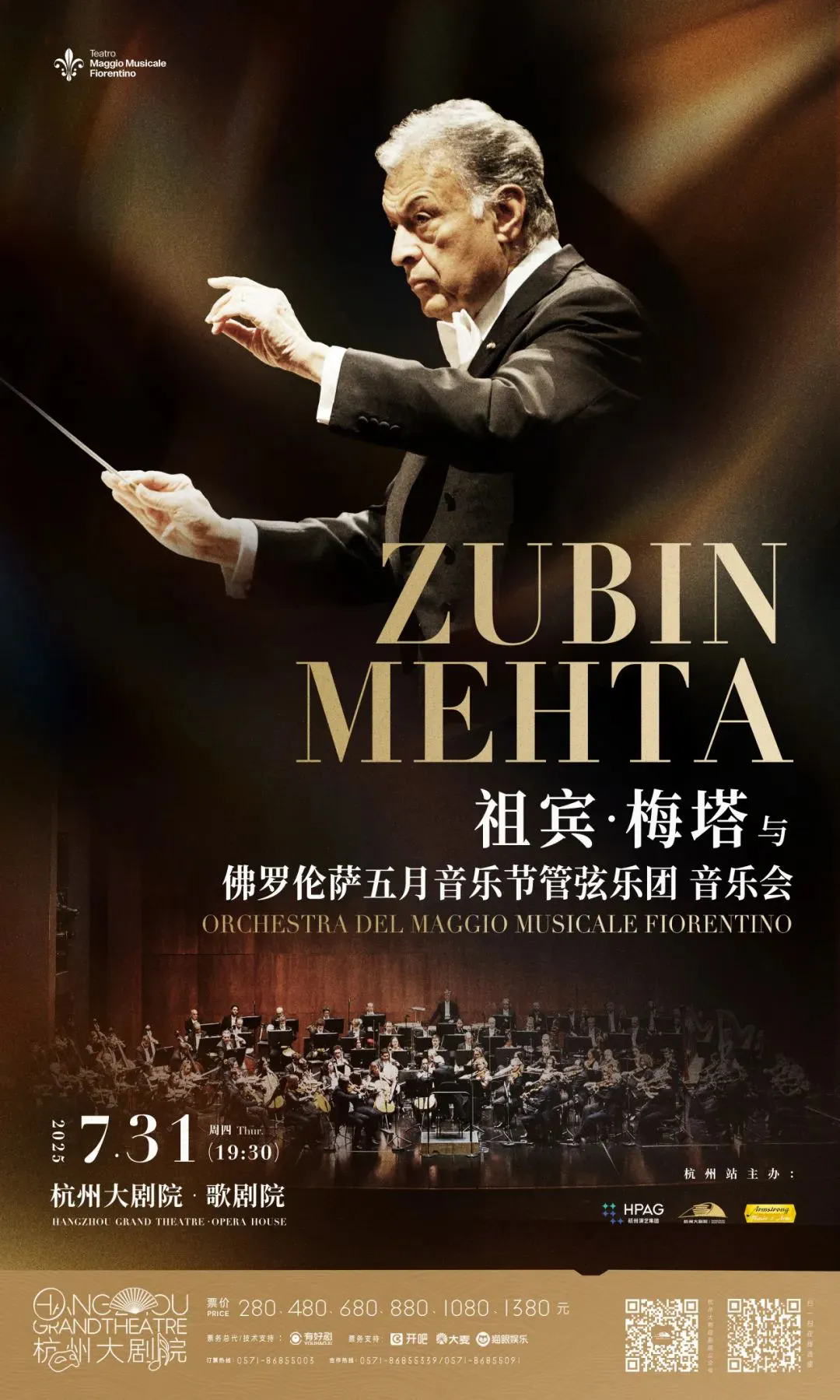 Legendary 89-year-old maestro Zubin Mehta will conduct the Orchestra del Maggio Musicale Fiorentino in a powerful concert on July 31 at Hangzhou Grand Theatre! Experience masterpieces by Verdi and Brahms—an unforgettable evening of classical brilliance!