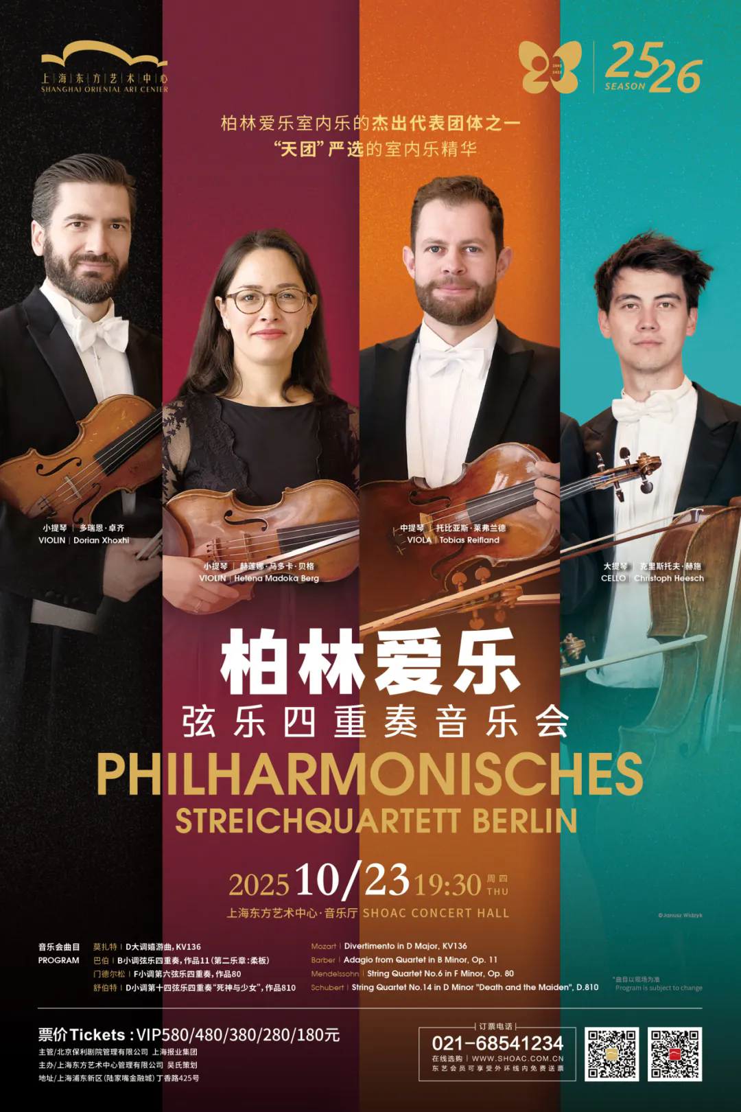 The “dream team” is coming! On October 23, the Philharmonisches Streichquartett Berlin will grace the Shanghai Oriental Art Center with classics by Mozart, Mendelssohn, Barber and Schubert. Continuing Germany’s rich chamber music tradition, these four award-winning musicians promise a performance of both refinement and passion—an evening not to be missed.