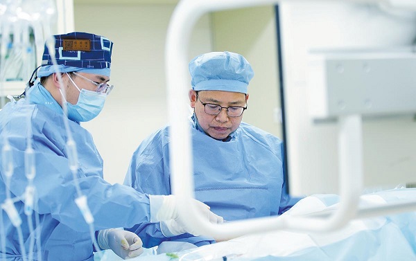 Doctors from the hospital's cardiovascular department at work. [Photo provided to CHINA DAILY]