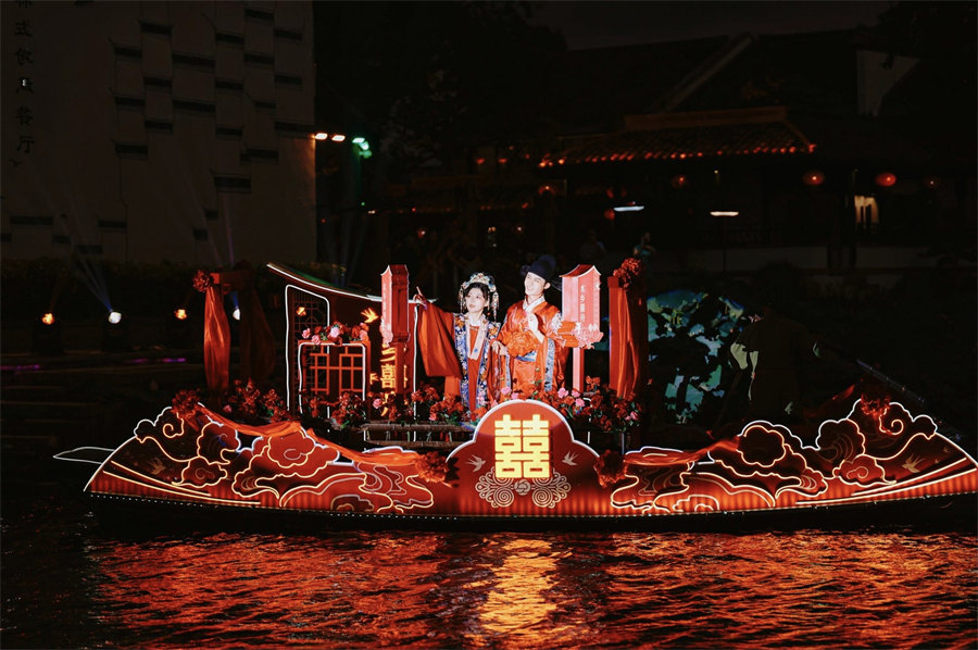 The second season of the Dream of Xitang: Boat Stories parade is staged in Xitang ancient town, Jiaxing city, Zhejiang province, on Friday. [Photo provided to chinadaily.com.cn]