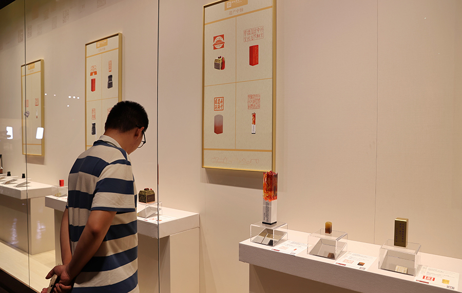 The exhibition, which will last until Sept 12, displays about 200 seals that are created by artists and the general public with the theme of key architecture along the Beijing Central Axis. New materials like glass fiber and photopolymer resin and modern technologies, including artificial intelligence design and 3D printing, were also used in the exhibits to creatively demonstrate traditional culture.