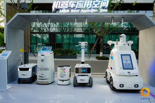 A recent exhibition held in the World Games Village highlights over 20 locally developed technological products set to enhance operations and logistics at the upcoming Chengdu World Games. [Photo provided to chinadaily.com.cn]