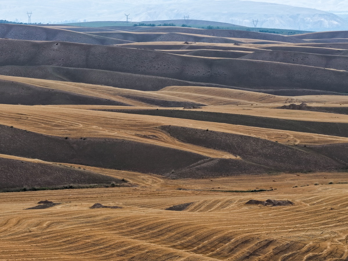 An aerial drone photo taken on July 31, 2025 shows wheat fields in Tekes county, Ili Kazak autonomous prefecture, Northwest China's Xinjiang Uygur autonomous region. [Photo/Xinhua]