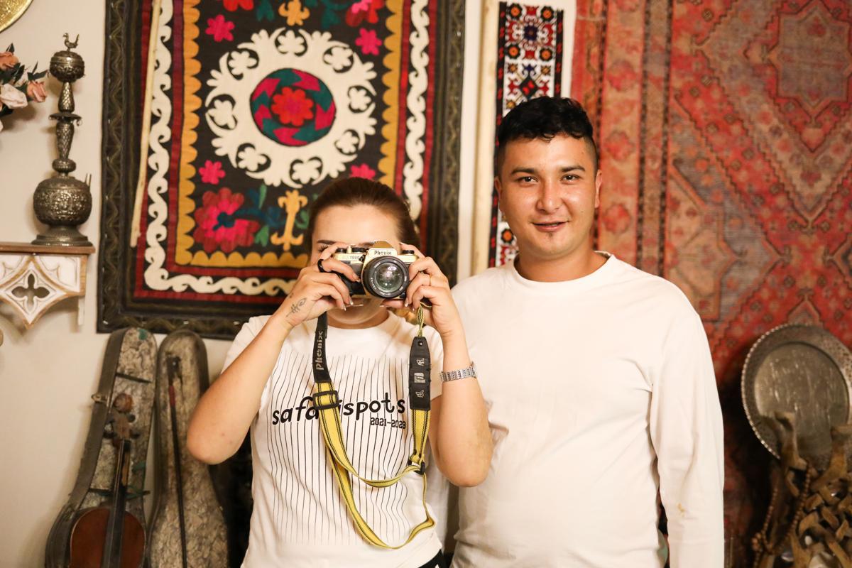 Xiamier's guesthouse is more than a hostel — it is a living museum of culture and memory. A wooden clock carved in the shape of an eagle hangs in a prominent spot. Traditional instruments like the rabab (lute-like instrument) and setar (string instrument) rest in the corners, while richly colored carpets from different decades cover the walls. In one corner hangs a deep red rug from the 1960s — used at his grandfather's wedding, and preserved ever since.