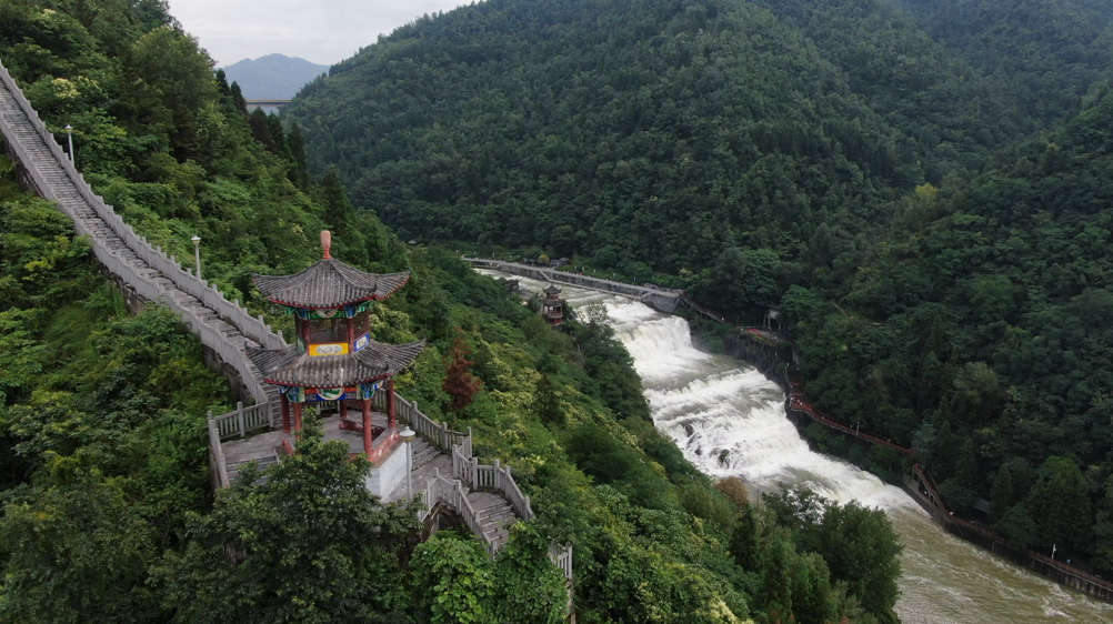 The three-tiered Xiangshuitan Falls drops more than 40 meters, sounding like thunder rolling through a valley. [Photo by Zhou Haidong/For chinadaily.com.cn]