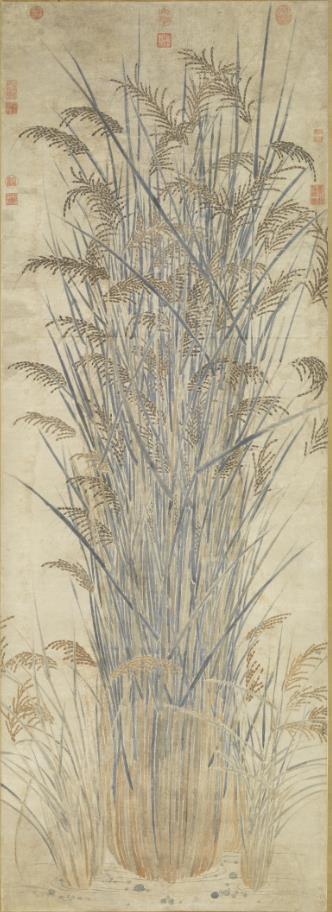 In the Yuan Dynasty (1271-1368) Auspicious Grain from the Taipei Palace Museum in Taipei, we witness the growth of grain and the abundance to come. The Han Dynasty (206 BC-AD 220) pottery chef figurine from Chengdu Museum invites us to enjoy the tradition of tie qiu biao (gaining autumn weight for the cooler days ahead). The Tang Dynasty (618-907) tri-color watermelon from Shaanxi History Museum encourages us to eat seasonal fruits like watermelon to "bite autumn" (yao qiu), chasing away the last summer heat.