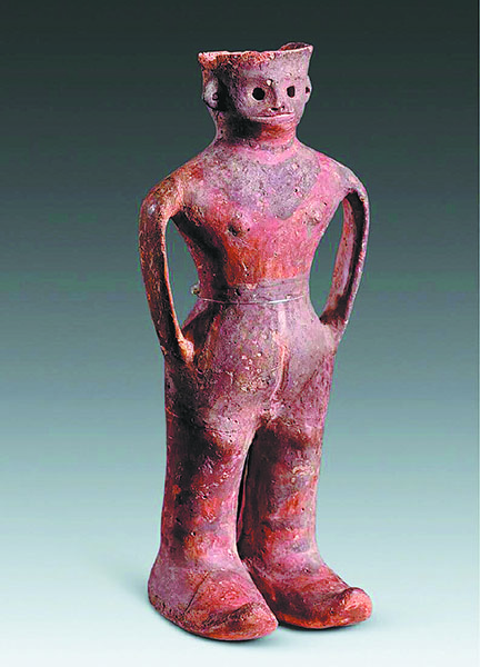 A human-shaped pottery jar from the transitional period of the Xia (c.21st century-16th century BC) and Shang (c.16th century-11th century BC) dynasties. [Photo provided to China Daily]