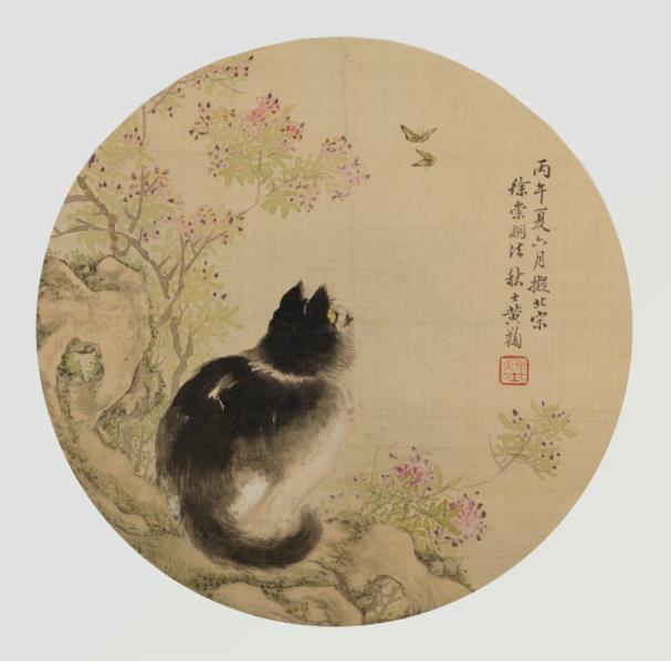 Fan painting depicting a cat and butterflies, Huang Ju (1796-1860), Qing Dynasty [Photo/Palace Museum official WeChat account]