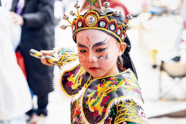 Chen Kaiming, 7, drew the audience's attention with his eye-catching performance during this year's chunwan (Spring Festival gala) on China Central Television. Chen is a member of Nanshan Yingge Team, in Puning. Chen's greatgrandfather, grandfather and father are all Yingge dancers, and Chen has shown a passion and talent for Yingge.