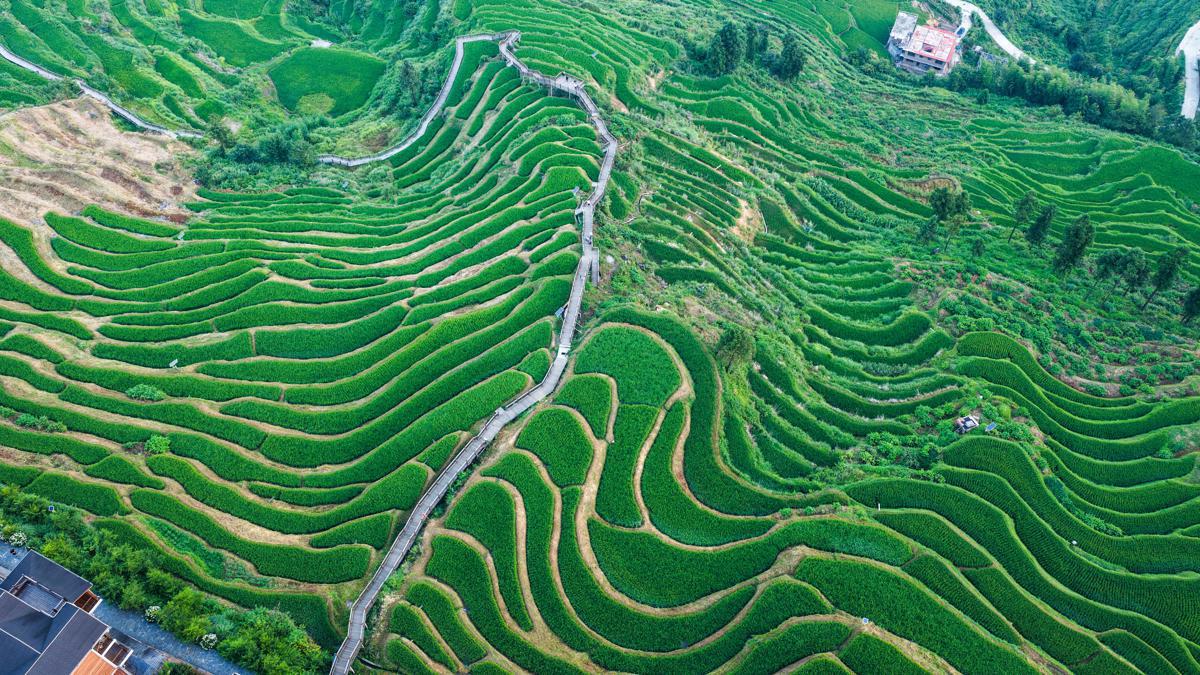 In early August, the terraced fields of Shanbei village in Xupu county, Huaihua of Hunan province, stretched their emerald-green layers under the summer heat, presenting a captivating pastoral landscape.