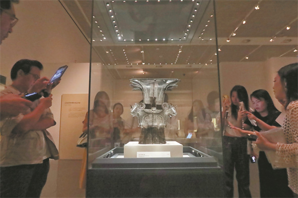 Siyang Fangzun (middle), the four-goat square zun (wine vessel) dating to the Shang Dynasty (c.16th century-11th century BC).[Photo provided by Jiang Dong/China Daily]