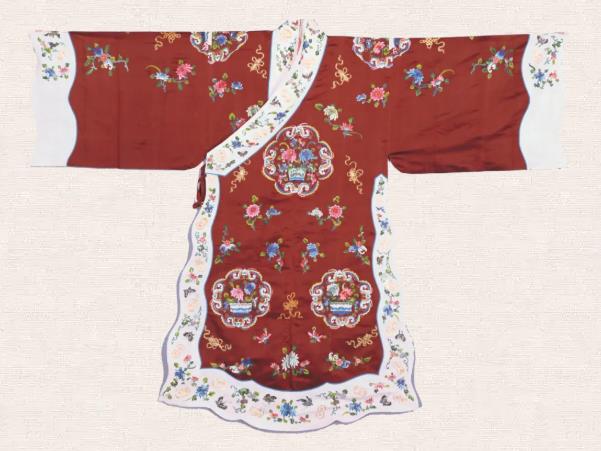 Soy-sauce purple satin embroidered robe with chrysanthemum and butterfly motifs, Guangxu reign (1875-1908) of the Qing Dynasty [Photo/Suzhou Silk Museum official WeChat account]