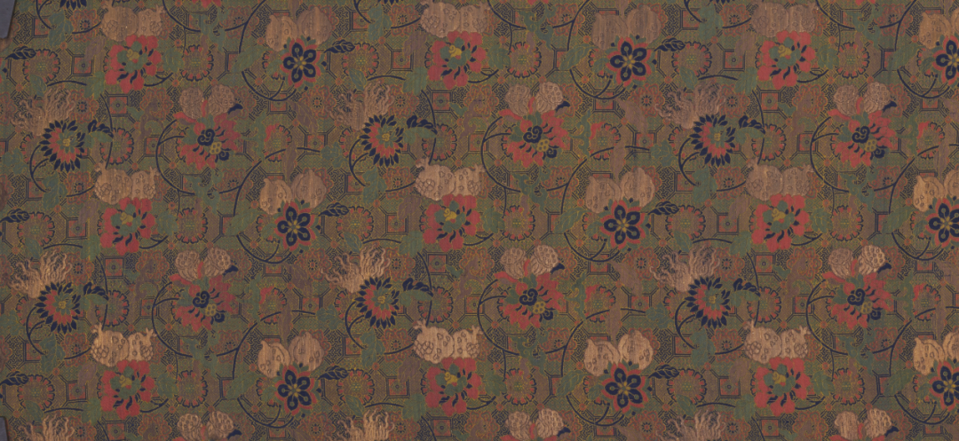 Blue-grounded brocade with gold thread, motifs of peaches, pomegranates, finger citrons, and interlocking flowers, Qianlong reign (1736-95) of the Qing Dynasty [Photo/Suzhou Silk Museum official WeChat account]