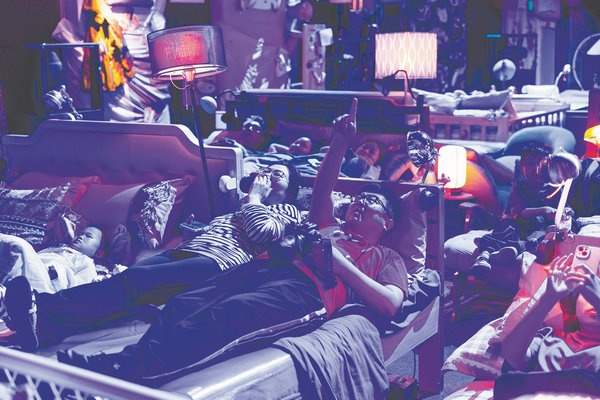 Visitors can watch the performances while lying in bed at the Bed Theater.CHINA DAILY
