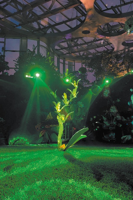 The greenhouse garden of Shanghai Expo Culture Park features lighting designs, multimedia installations and interactive elements.[Photo provided by Zheng Zheng/China Daily]