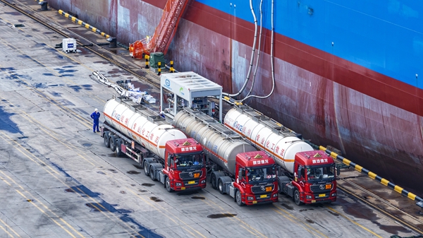 The first ship bunkering service using methanol at Shandong Port Group. [Photo provided to chinadaily.com.cn]