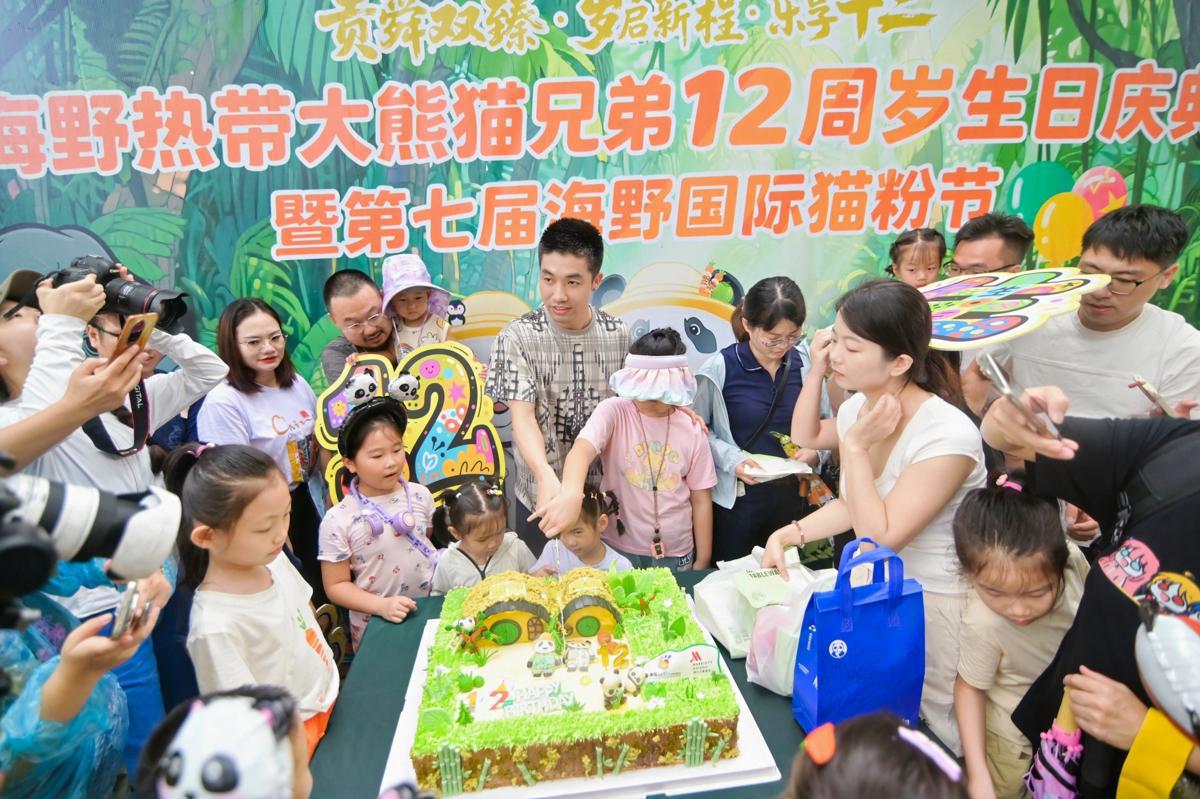 The Hainan Tropical Wildlife Park and Botanical Garden in Haikou, Hainan province, celebrated the 12th birthday of the giant pandas Gonggong and Shunshun on Sunday, marking their seventh year on the island with a lively festival blending conservation awareness, local culture, and interactive fan activities.