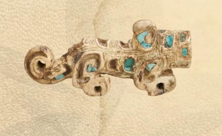 Bone tiger embedded with turquois, from the collection of the Institute of Archaeology of the Chinese Academy of Social Sciences [Photo/Tianjin Museum official WeChat account]